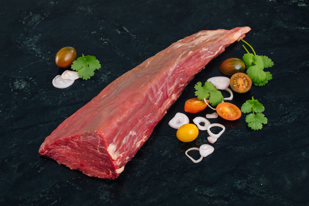 The crown jewel of beef, the tenderloin sits beneath the ribs along the backbone and is prized for its fine grain, and tender bite. Also known as the Filet Mignon, these steaks come from the peeled tenderloin with the side chain removed and then cut into steaks.